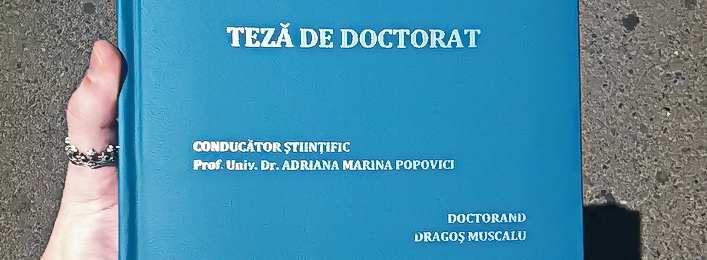Pe data de 26 iunie 2015, am sustinut public teza de doctorat: „RIGOARE SI LIBERTATE IN PROCESUL CREATOR AL ACTORULUI”; iar in 30 iulie a aparut ordinul ministrului educatiei si cercetarii stiintifice nr. 4643, privind atribuirea titlului de DOCTOR.